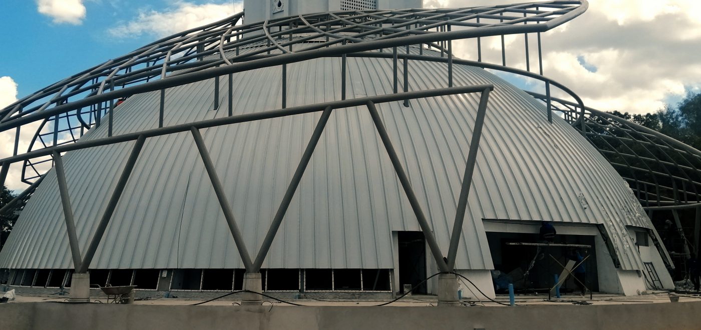 เนื่องจากเป็นพื้นที่อยู่ใกล้ทะเล ทางบริษัทจึงแนะนำวัสดุแผ่นหลังคา Aluminium ขึ้นรูปลอน Standing Seam มาเพื่อตอบโจทย์ลูกค้าที่ว่าด้วยเรื่องดังนี้ จะต้องกันเรื่องปัญหาน้ำรั้วได้ 100 % , ตัวแผ่นจะต้องทำรูปทรงโค้งลักษณะโดมได้ และเป็นวัสดุที่ได้รับการรับรองในเรื่อง LEED และฉลาดเขียว ให้ตรงกับนโยบายการในใช้วัสดุที่รักษาสิ่งแวดล้อม อีกทั้งยังมีการใช้ระบบเคลือบสีแบบ PVDF ที่ผ่านการทดสอบความคงทนต่อสภาพอากาศที่เป็นพื้นที่ใกล้ทะเลได้ดี